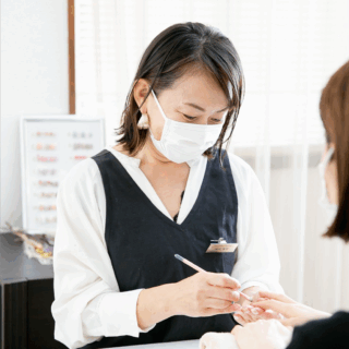 400色以上からパーソナルカラー診断を参考に、肌に合った色やデザインを提案。カラーはお試し塗り(3色まで)でお手元に仕上げた時に相違のないよう確認して決定していきます。
